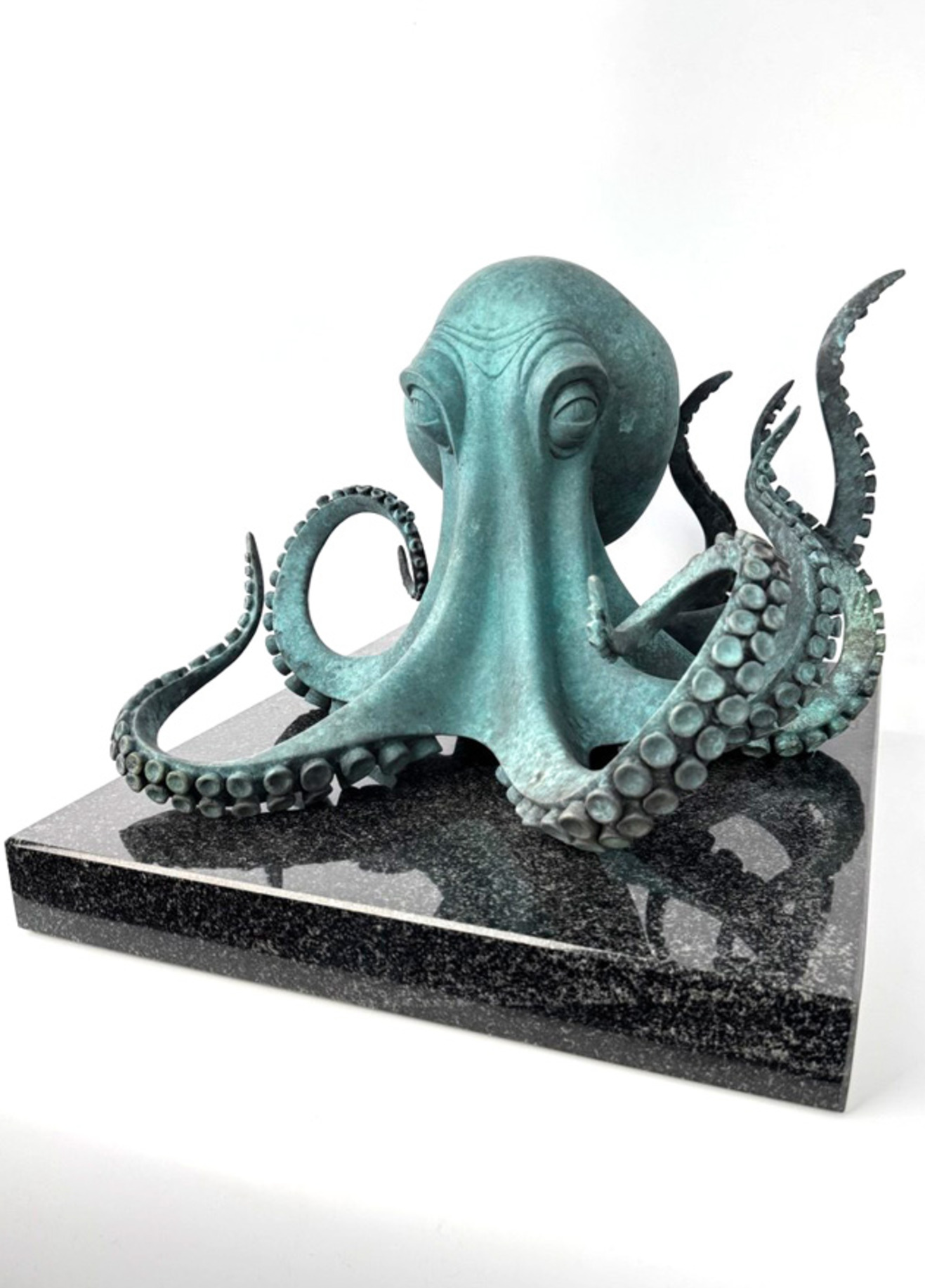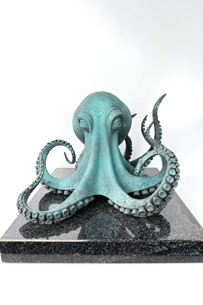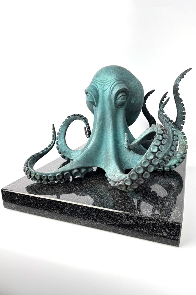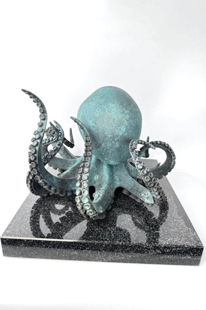 Для Aramare Vecchio особенно важен момент остановленного движения. Галерея определяет это как одну из ключевых особенностей его пластики: жест фиксируется в точке наивысшей выразительности и сохраняет внутреннюю энергию даже в покое. В «Осьминоге» этот принцип раскрывается особенно убедительно. Щупальца расходятся в пространстве как самостоятельные линии движения, но вся форма остается собранной и цельной. Именно эта собранность делает образ сильным и запоминающимся.