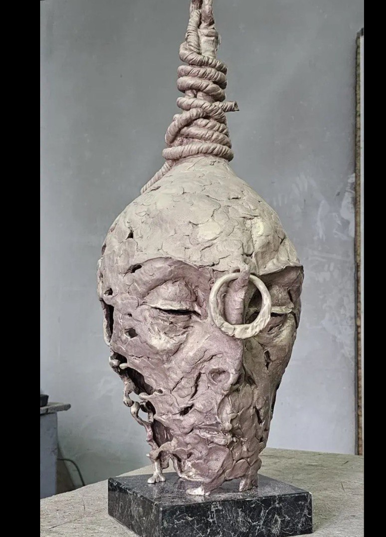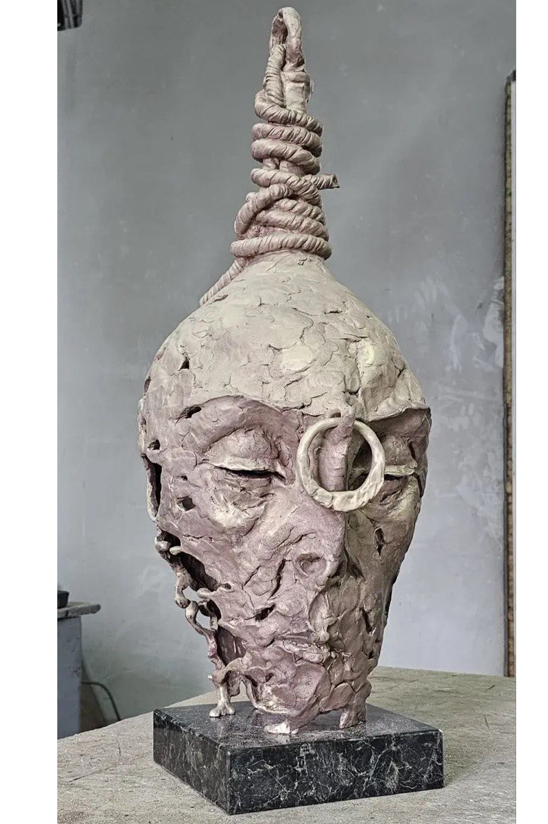 «Зарождение Джина» раскрывает состояние пробуждения, когда внутренняя энергия только начинает обретать форму. В этой работе чувствуется импульс рождения, скрытая сила и напряжение момента, в котором образ еще связан с тайной своего происхождения. Скульптура звучит как внутренняя реплика: я проявляюсь. Именно поэтому она воспринимается так живо. Перед зрителем возникает не завершенный символ, а момент становления, когда энергия уже присутствует в материале, но еще сохраняет дыхание тайны.